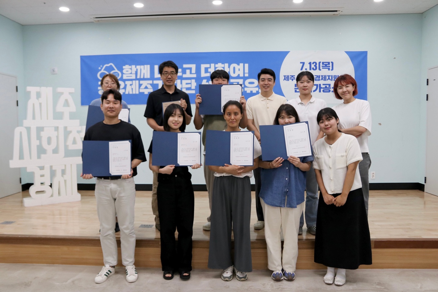 4월에 1기 위촉식을 하고 시간이 지나 성과공유회와 수료식을 바로 어제 ! 진행 했습니다 총 12명의 공유제주기자단은 취재아이템 선정, 취재•인터뷰, 기사작성을 거쳐 실제 온라인 언론사에 본인들의 이름으로 기사를 싣기도 하였는데요.