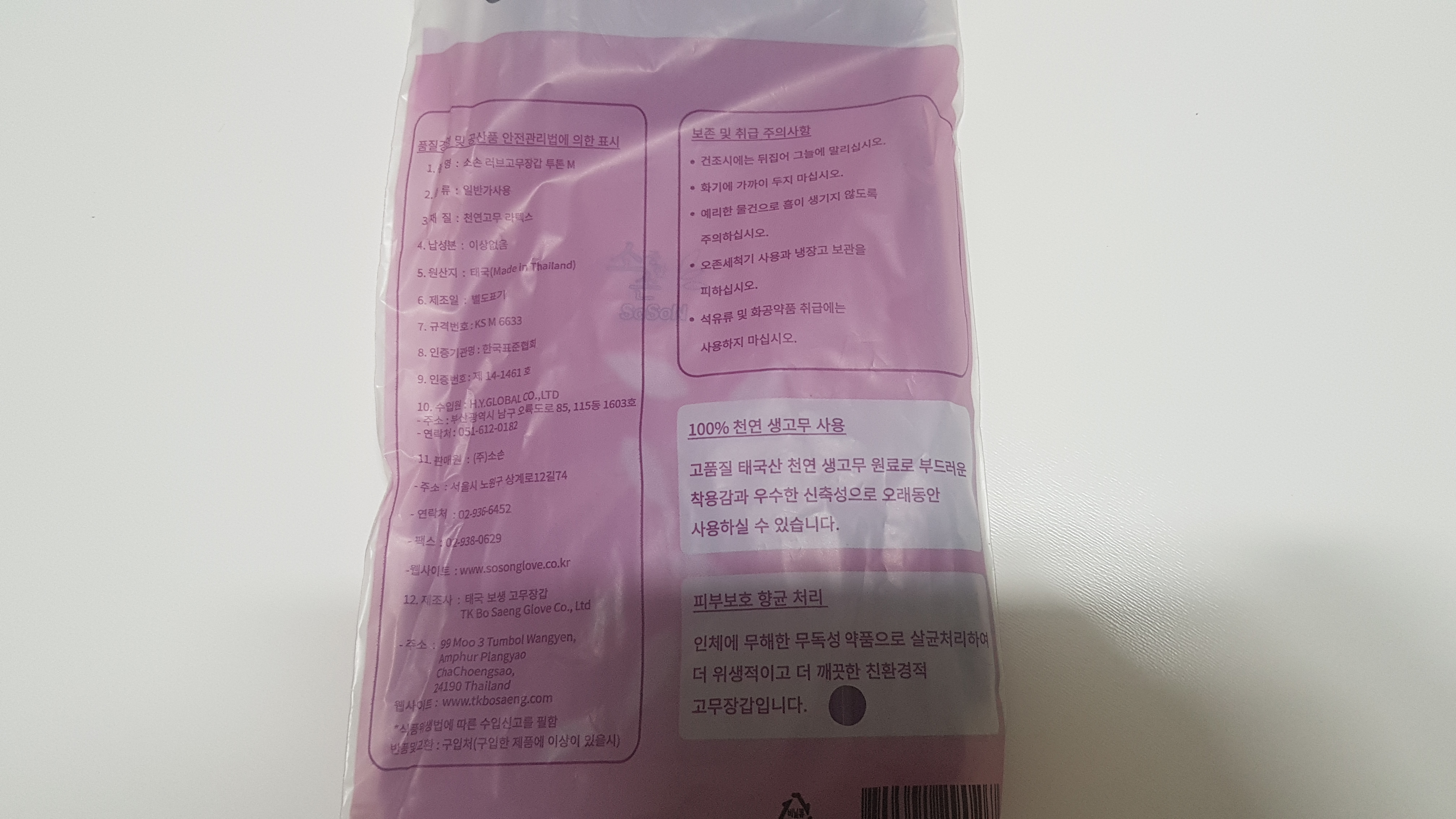 보라색 고무장갑 새제품입니다.