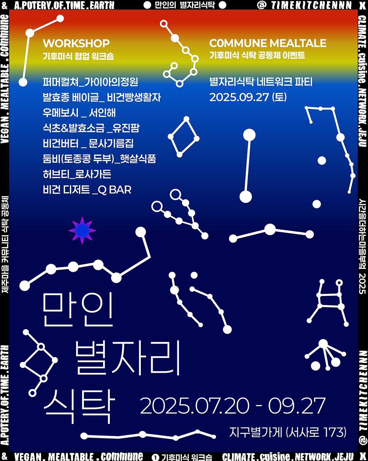 제주도 동서남북 마을의 채식 생산자를 초대하고 워크숍을 진행하는데요. 텃밭 만들기 부터 발효, 비건 디저트 까지, 여러 노하우와 정성을 이어받아 1가지 시즌 메뉴를 만듭니다.